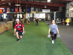 Paula Jager Wednesday, May 23, 2018 - 13:03 You are here Home Blog CFL 5/23 Skill: DB Walking Lunge 3 sets of 20 steps (10 per side) *DBs are to be held at the side. *May increase weight after each set WOD: 16 min AMRAP 100m Double Arm Farmers Carry 20 Push Ups 60 Jump Ropes Score is weight/rounds + reps Image