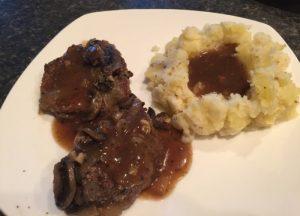 If you've earned your carbs for the day serve with mashed potatoes. To keep the meal fitting your waistline simply mash the potatoes with a little raw milk or broth; the gravy is so delicious you won't even miss the butter!