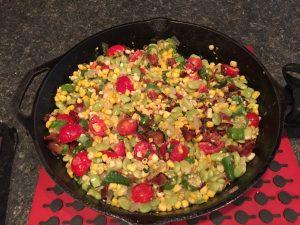 Add chopped onion, fresh okra, and garlic to skillet over medium, and cook, stirring often, until onion is just tender, about 6 minutes. Stir in fresh corn kernels, salt, pepper, and drained beans, and cook, stirring often, until corn is tender and bright yellow, 5 to 6 minutes. Add butter, and cook, stirring constantly, until butter is melted, about 1 minute. Remove from heat.